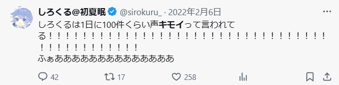 低くて優しさを感じられる「しろくる」さんの声は、多くの人を癒しています。